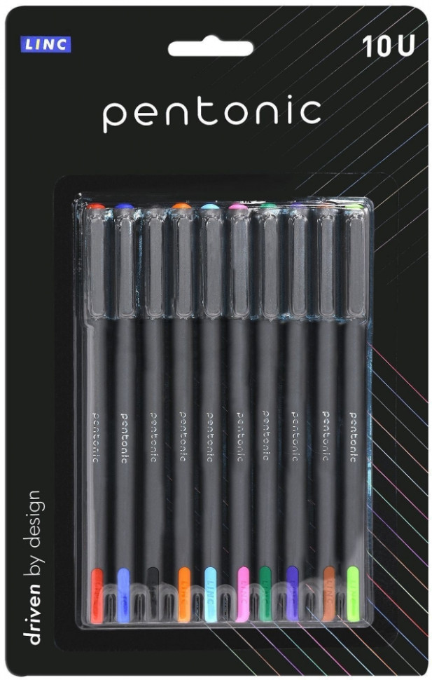 Набор из 10 шт, Набор шарик.ручек Linc PENTONIC SILVER ассорти 10 цв. 1 мм 10 шт кругл. корп. 7024/10/ASST (209375)