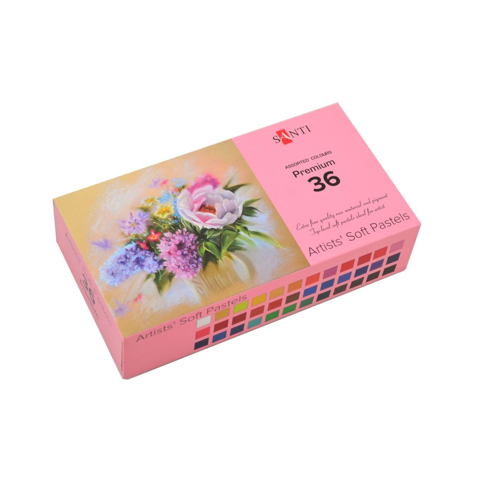 Суха художня пастель від бренду "SANTI" призначена для живопису і графіки в традиційній техніці. Також можливе застосування в акварельній техніці по вологому аркушу або при розмитті нанесеного зображення змоченим пензлем. Суху пастель можна поєднувати з іншими художніми матеріалами, такими як гуаш, чорнило, акрилові фарби, художні та акварельні олівці. Легко піддається розтушовуванню, відмінно лягає як на рівну, так і на шорстку основу. Створює м'яку і бархатисту фактуру поверхні.
