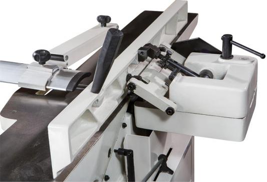 - Описание Jet JJ-6L-M — фуговальный станок с длинными чугунными столами, предназначенный для любительского применения. Благодаря тому, что он выполнен по той же компоновочной схеме, что и профессиональные модели Jet, он точен и удобен в работе. Конструктивно он состоит из двух частей. В нижней, играющей роль тумбы-подставки, располагается однофазный асинхронный («индукционный») мотор мощностью немного более киловатта и кожух сбора стружки со 100-миллиметровым патрубком для подключения к вытяжной установке. Верхняя часть состоит из чугунного основания, где размещен строгальный вал, и чугунных же рабочих столов с соответствующим оснащением, состоящим из защитного кожуха и упора заготовки. Оба стола регулируются по высоте при помощи винтовых механизмов, приводимых в действие ручками-маховиками. Перемещением подающего (переднего) стола регулируют глубину строгания, для чего есть соответствующая разметка; принимающий (задний) смещают только при наладочных операциях во время обслуживания станка. Упор заготовки чугунный, с механизмом для регулировки наклона (он возможен в обе стороны). Фиксация выбранного положения производится резьбовым зажимом. Ножевой вал укомплектован тремя ножами, допускающими повторную заточку. Их типоразмер такой же, как и у профессиональных фуганков Jet с аналогичной шириной строгания. Особенности Jet JJ-6L-M: Регулировка глубины строгания Регулируемый фуговальный упор Регулируемое ограждение ножевого вала Фуговальные столы из чугунного литья Фуговальный упор из чугунного литья Напряжение: 220 В Размер рабочего стола (фугование): 1215 x 182 мм Диаметр строгального вала: 61 мм