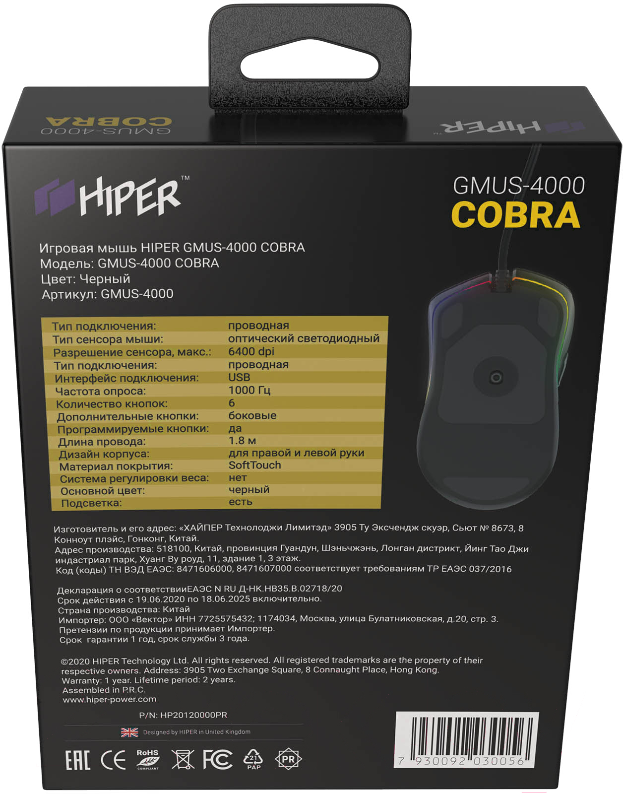 Мышь HIPER Cobra GMUS-4000 (черный)