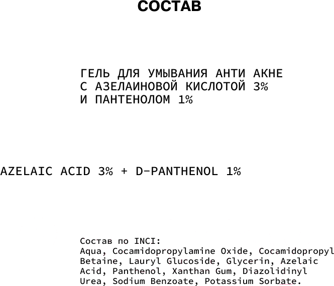 • Активные ингредиенты пантенол, азелаиновая кислота