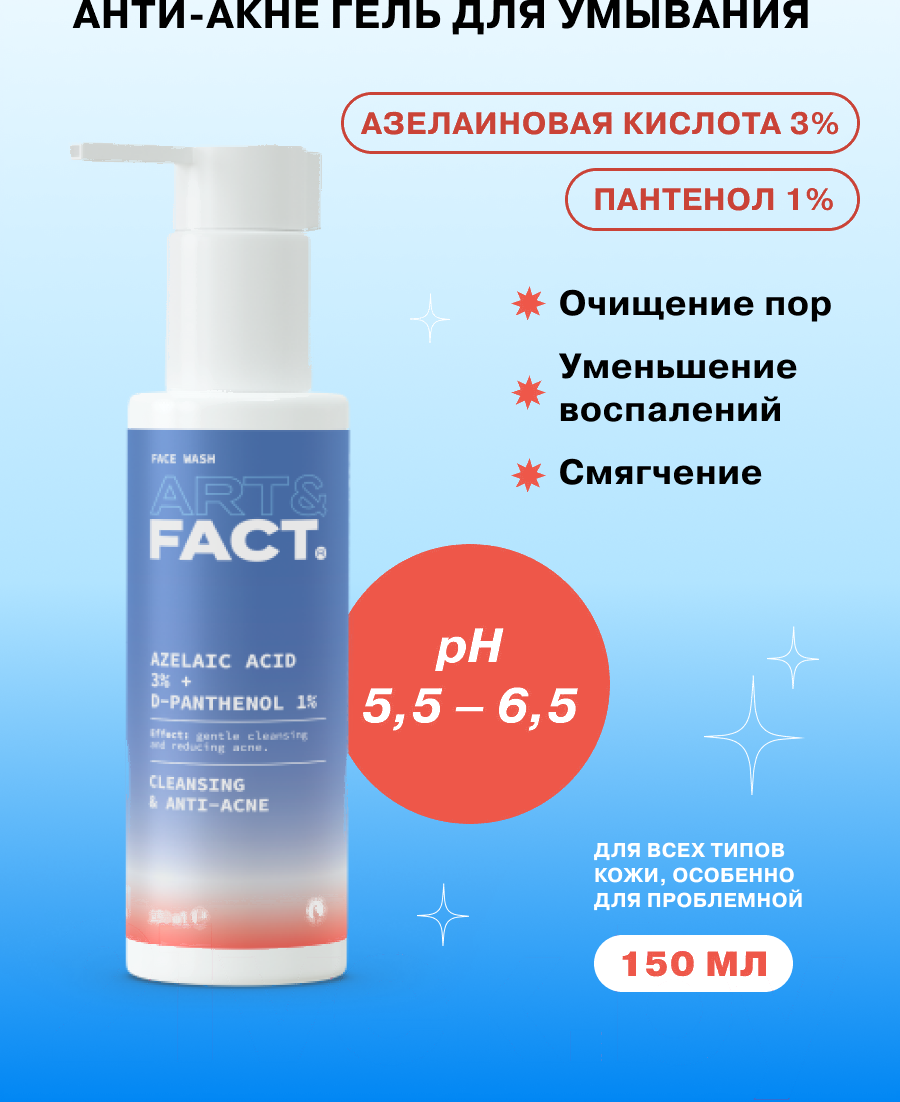 Гель для умывания Art&Fact Azelaic Acid 3% + Panthenol 1% Анти-акне (150мл)