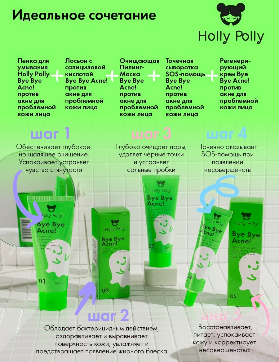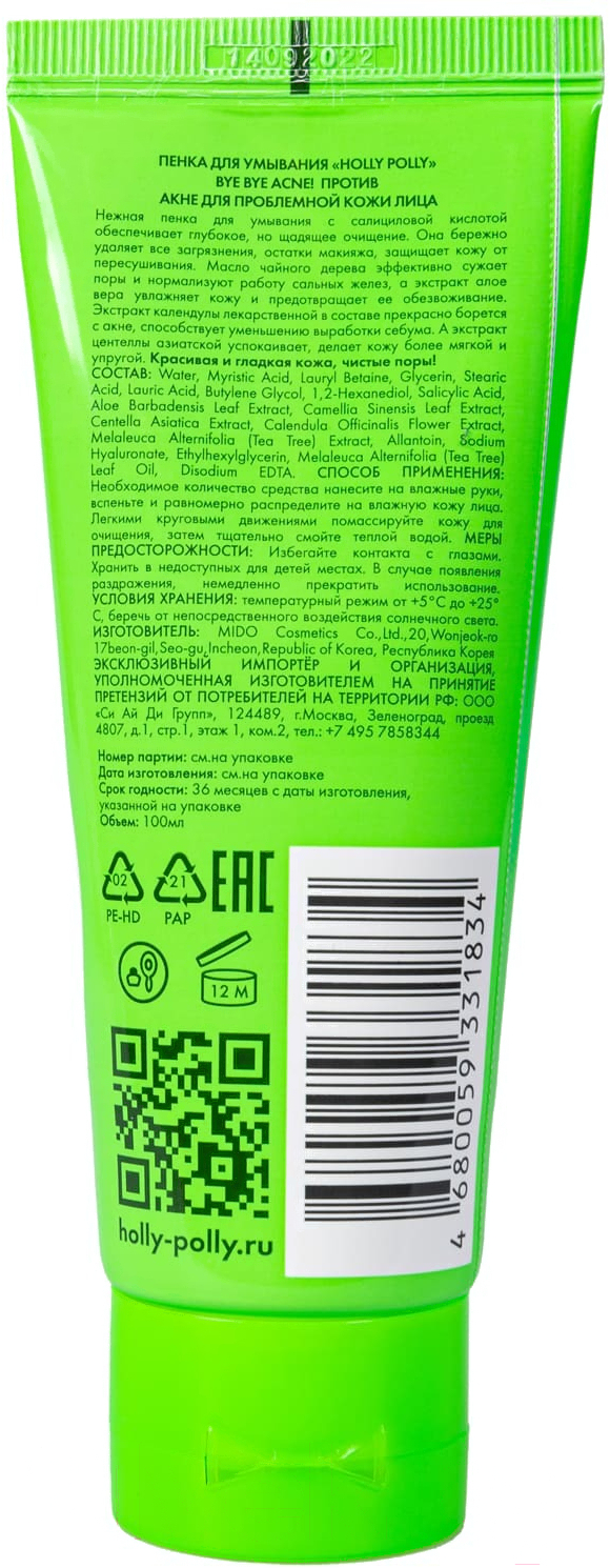Пенка для умывания Holly Polly Bye Bye Acne против акне и воспалений (100мл)