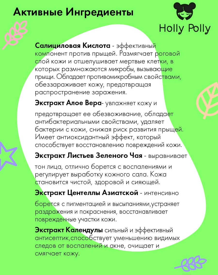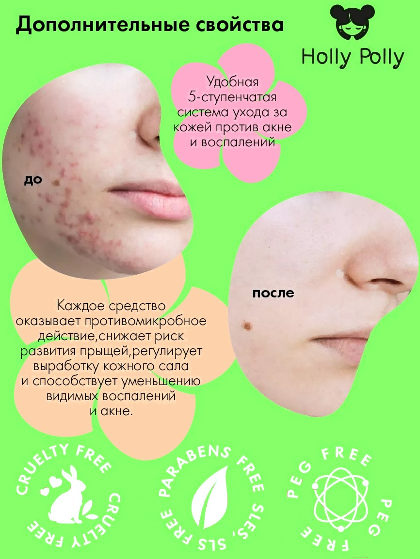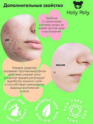 • Действие от прыщей, от черных точек, матирующее, сужение пор, успокаивающее, очищающее, себорегулирующее, отшелушивающее, стягивающее