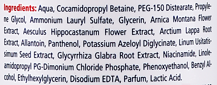 - Активные ингредиенты пантенол, экстракт арники, экстракт лопуха, экстракт каштана