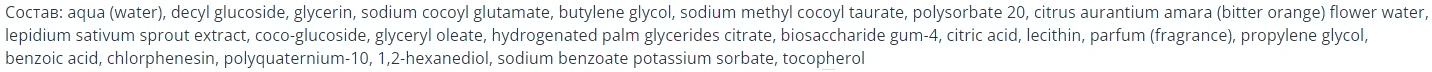 • Активные ингредиенты мицеллы, экстракт кресс-салата, экстракт флердоранжа
