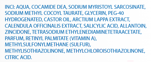 • Активные ингредиенты аллантоин, цинк, салициловая кислота, экстракт календулы, витамин А, сера, экстракт лопуха