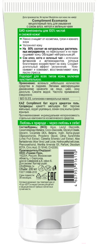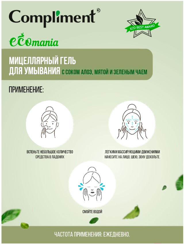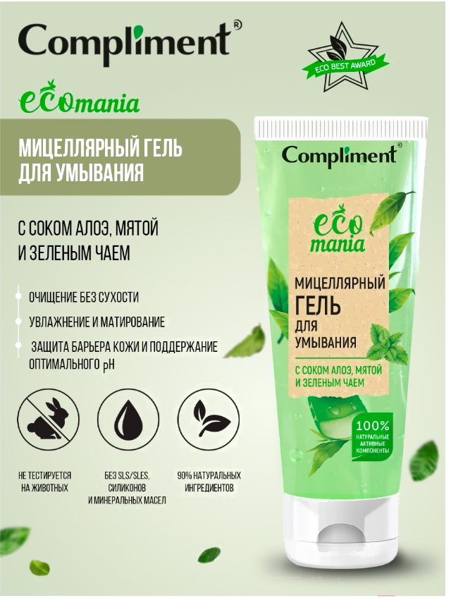 Гель для умывания Compliment Мицелярный с соком алоэ мятой и зеленым чаем (200мл)