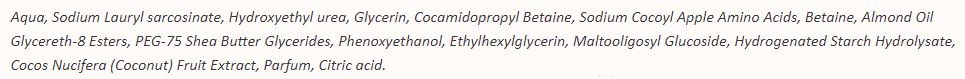 - Активные ингредиенты экстракт кокоса, глицерин, бетаин, масло миндаля, масло ши, гидрованс