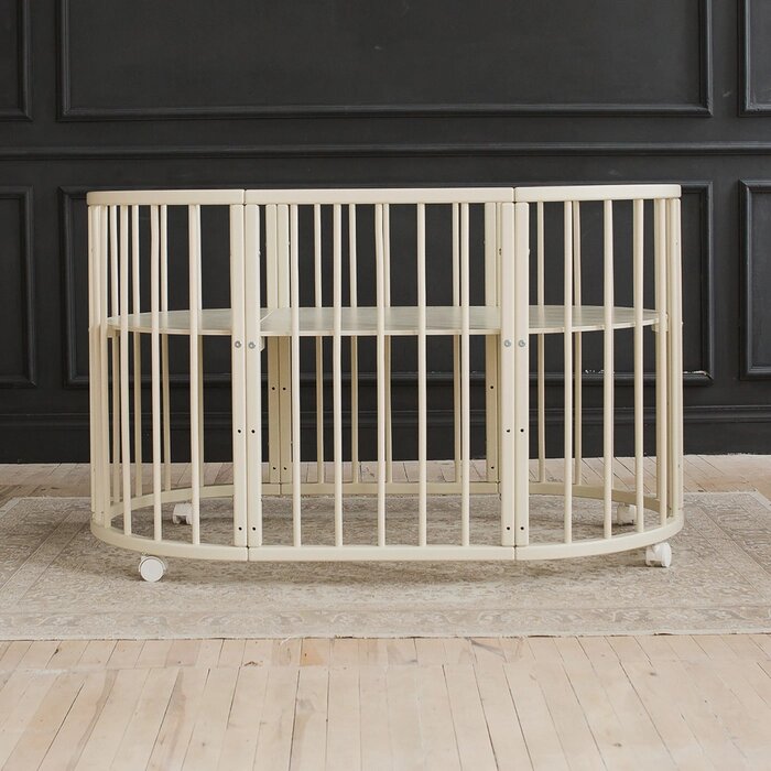 Кроватка-трансформер 6 в 1 MerryHappy круглая/овальная, лакиров., цвет слоновая кость