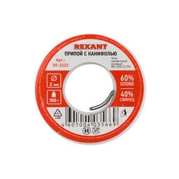 Оборудование паяльное Rexant Припой с канифолью 100гр d=2.0мм (Sn60 Pb40 Flux 2.2%) REXANT