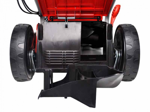 Большой пластиковый травосборник объемом 65 литров с индикатором заполнения. Перфорирование обеспечивает свободный поток воздуха, что позволяет мусору ложиться более плотно и эффективно заполнять место в контейнере.
