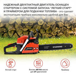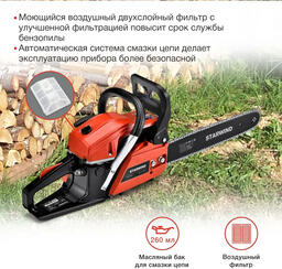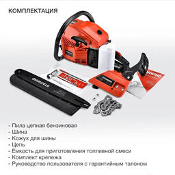 • Дополнительная комплектация шина, цепь, защитный чехол, ключ, емкость для топлива, крепеж (комплект)
