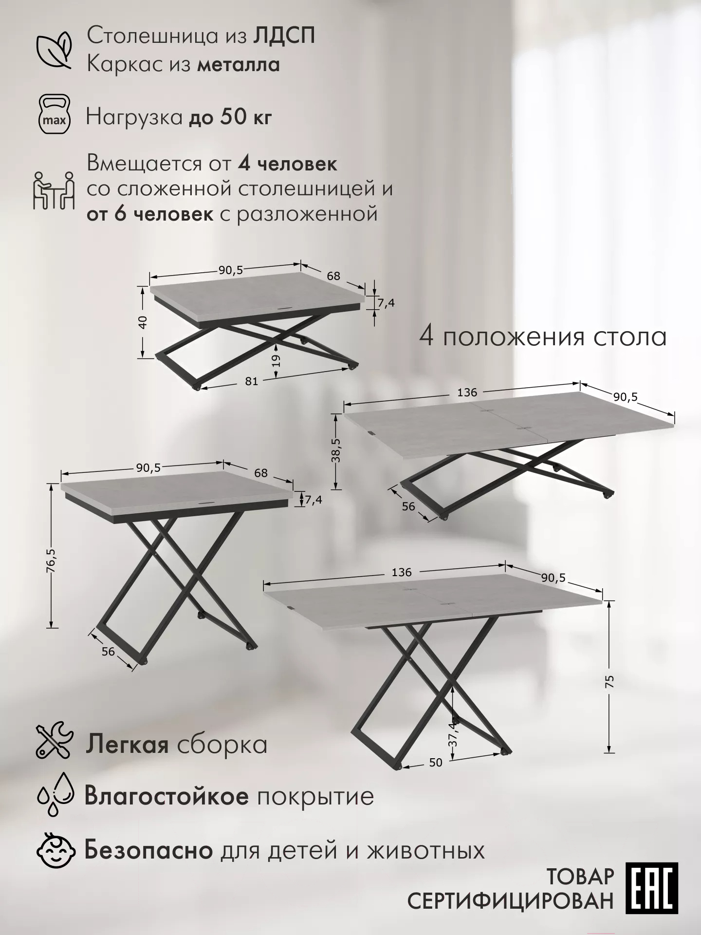 Стол-трансформер Калифорния мебель Ридмен (бетон чикаго)