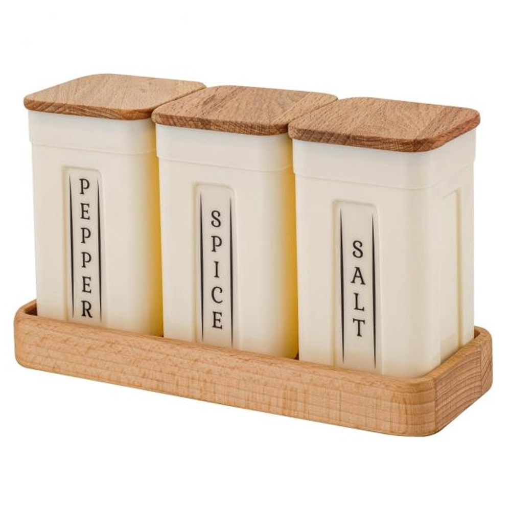 Набор контейнеров для специй с крышкой на деревянной подставке 0,2 л х 3 шт. Plastic Republic SE106612996