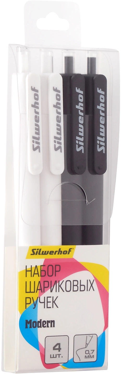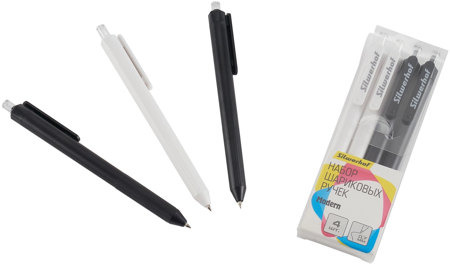 Набор ручек шариков. автоматическая Silwerhof NG Modern d=0.7мм син. черн. блистер ев. (4шт)
