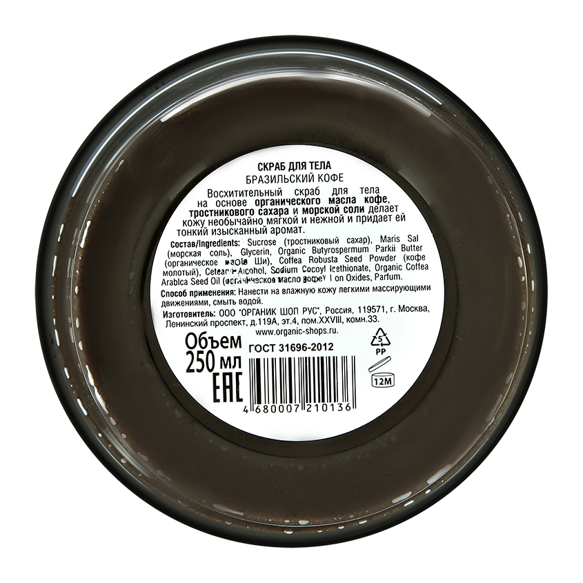 4680007210136 Скраб для тела «Бразильский кофе», 250 мл