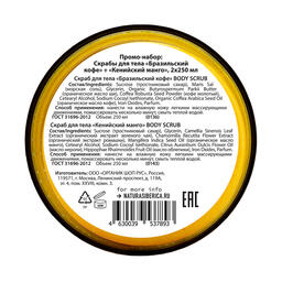 Скраб для тела `ORGANIC SHOP` Бразильский кофе + Кенийский манго 2x250 мл