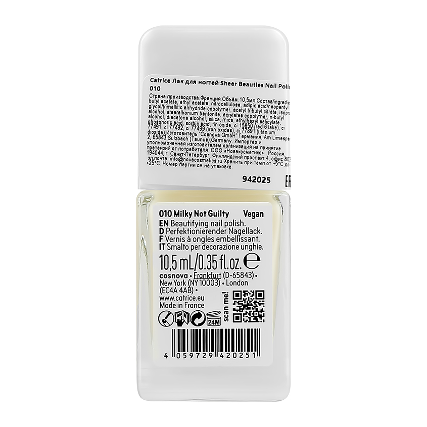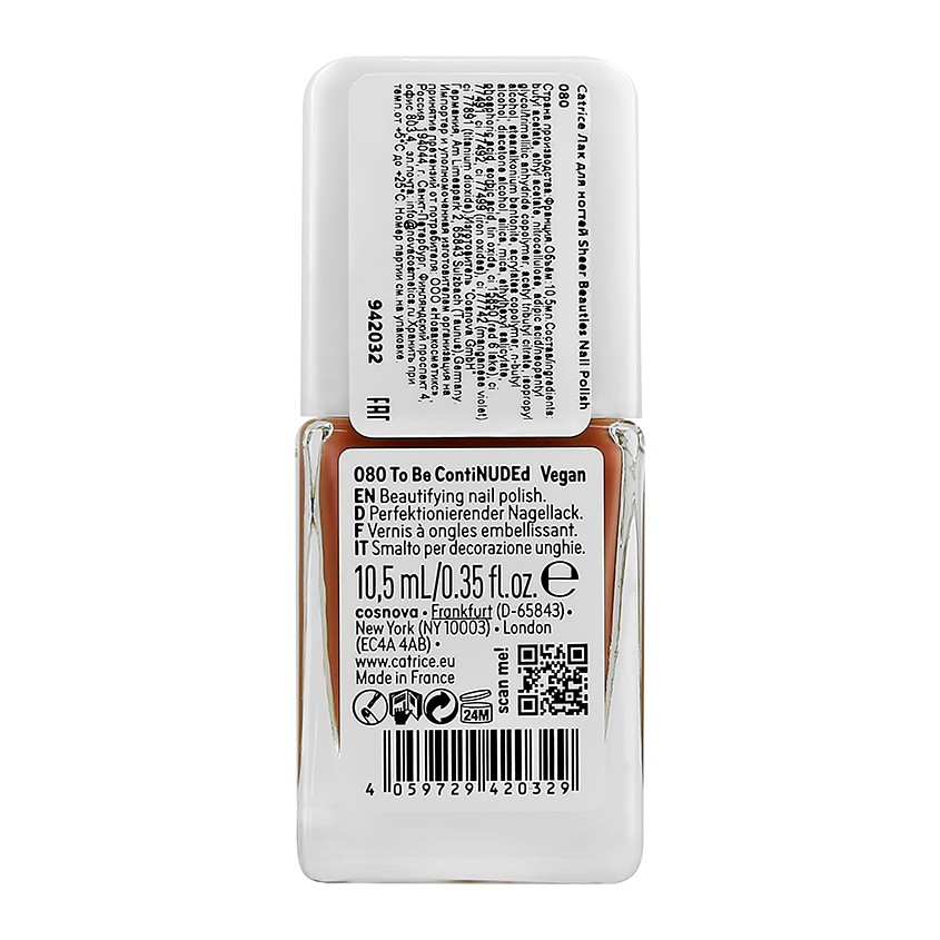 Лак для ногтей `CATRICE` SHEER BEAUTIES тон 080 To be contiNUDEd