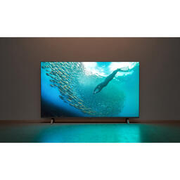 Завдяки корпусу з ледь помітною рамкою, цей 4K-телевізор відмінно впишеться в будь-який інтер'єр. Пульт дистанційного керування телевізора виготовлений з переробленого пластику.