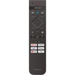 Цей телевізор має поліровані металеві ніжки, і ви можете використовувати Ambilight для атмосферного освітлення, коли екран вимкнено. Пульт дистанційного керування телевізора виготовлено з переробленого пластику.