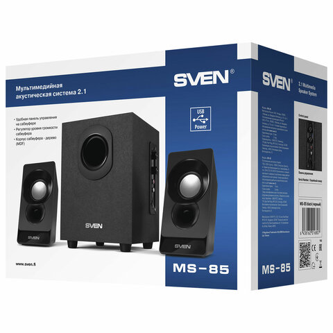 Колонки компьютерные SVEN MS - 85, 2.1, 10 Вт, питание USB, черный, SV-016807