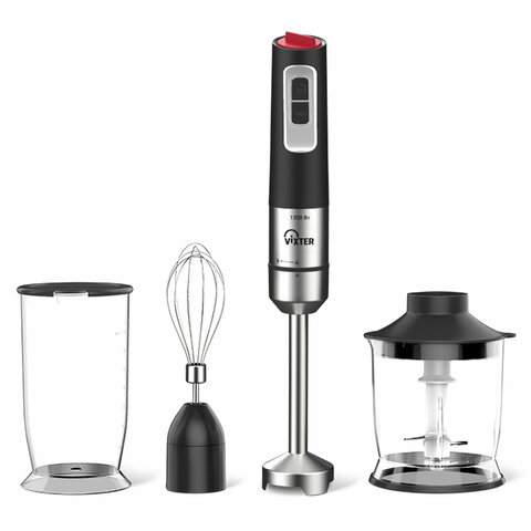 Блендер погружной VIXTER HBW-2165, 1200Вт, регулировка скорости, TURBO, 3 насадки, стакан, черный