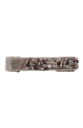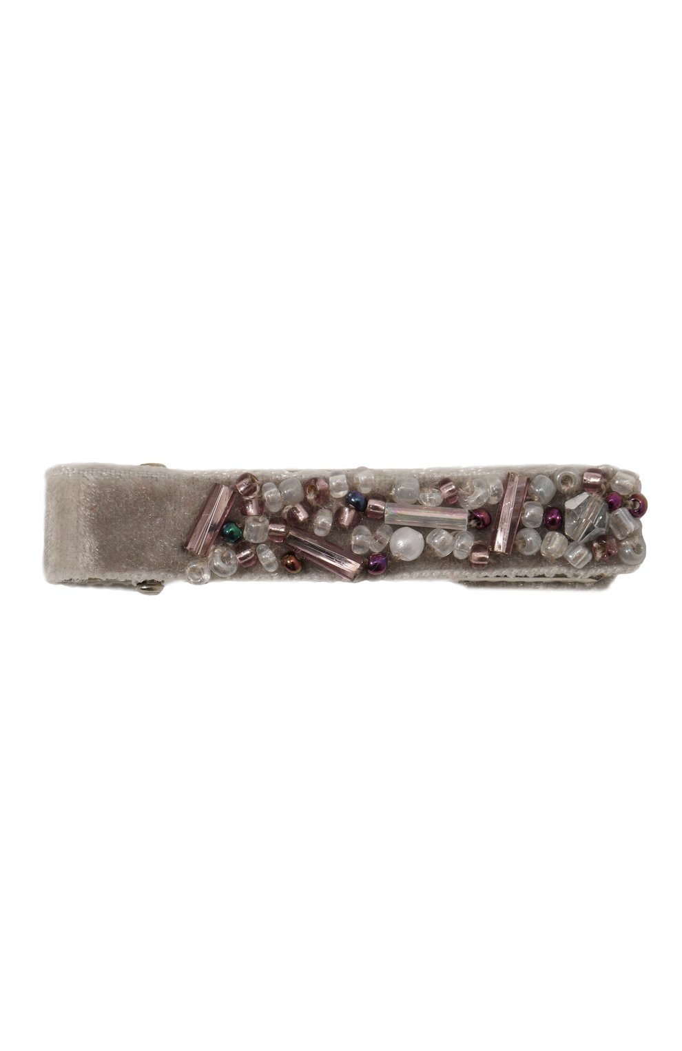 Небольшая серая заколка не только поможет зафиксировать пряди, не повреждая волосы, но и добавит выразительности прическе любой сложности. Аксессуар с зажимом из прочного металла обтянули бархатистым текстилем и декорировали разноцветным чешским бисером и стеклярусом.