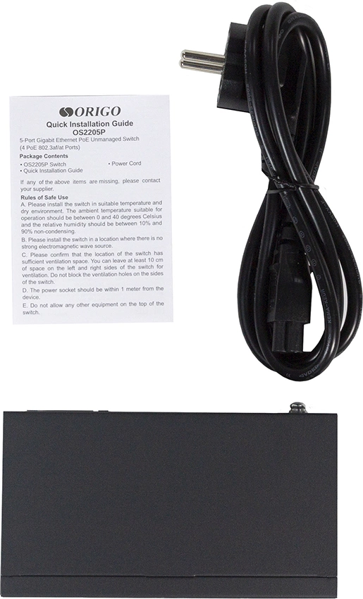 • Комплектация Коммутатор OS2205P/60W, адаптер питания, краткое руководство по установке