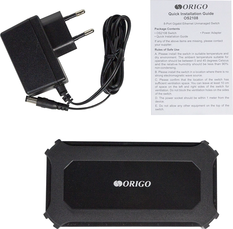 • Комплектация Коммутатор OS2108, адаптер питания, краткое руководство по установке