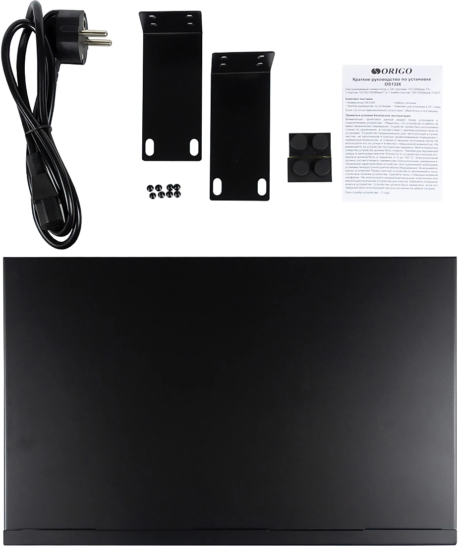 • Комплектация коммутатор OS1326 - 1 шт, кабель питания - 1 шт, комплект для установки в 19-дюймовую стойку - 1 шт, документация