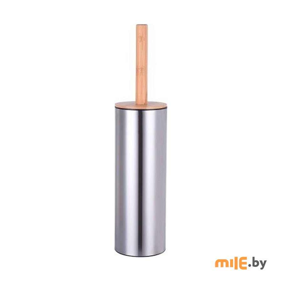 Ершик для унитаза Bisk Caspian 90004 из нержавеющей стали. Поверхность матовая. Крышка и ручка из бамбука. Ерш из силикона.