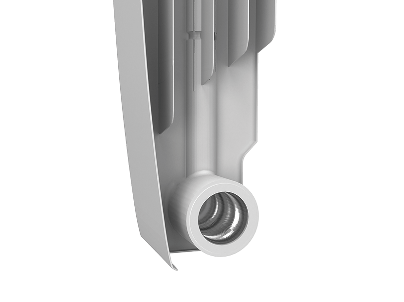 Полностью биметаллический дизайн-радиатор Royal Thermo BiLiner 500 с коллектором из углеродистой стали. Нижние концы ребер расположены по дуге, поэтому холодный воздух эффективно забирается из не прогретых слоев помещения.
