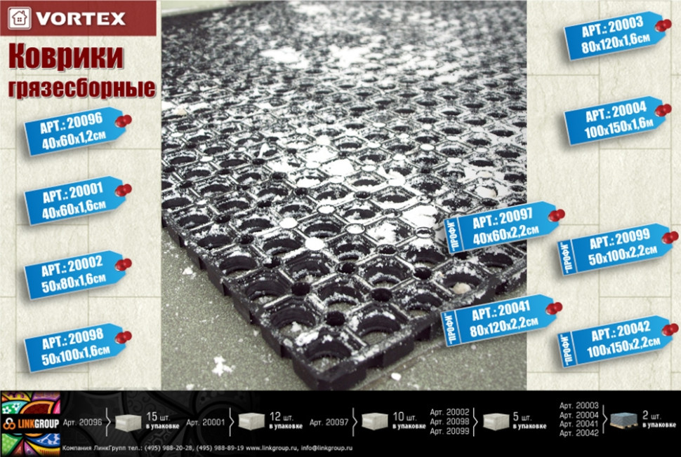 Нарушена упаковка! <296065> Коврик ячеистый, грязесборный 80*120*1,6см VORTEX 20003