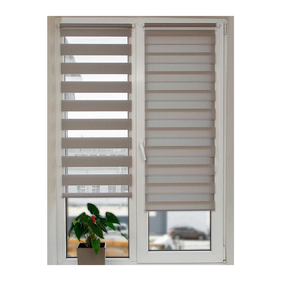 Двухполотенная структура рольштор, представляющая собой горизонтальное чередование плотного и полупрозрачного полиэстерового полотна, создает благоприятные условия для произвольной настройки затемнения в зависимости от времени суток и настроения.