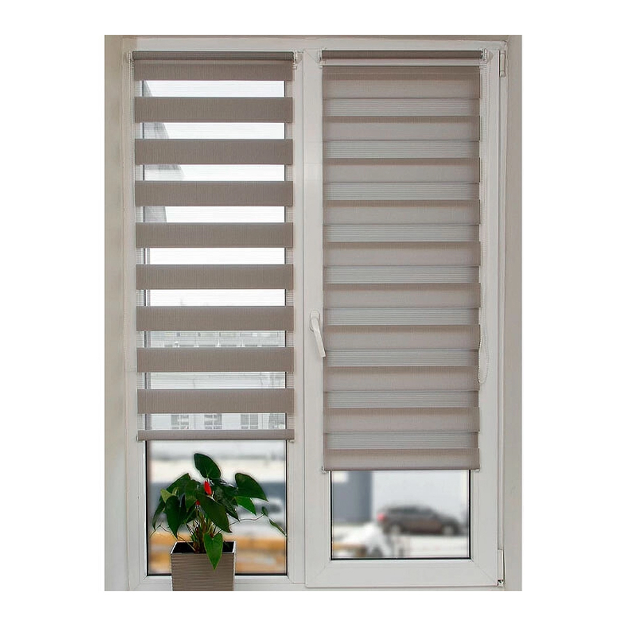 Двухполотенная структура рольштор, представляющая собой горизонтальное чередование плотного и полупрозрачного полиэстерового полотна, создает благоприятные условия для произвольной настройки затемнения в зависимости от времени суток и настроения.