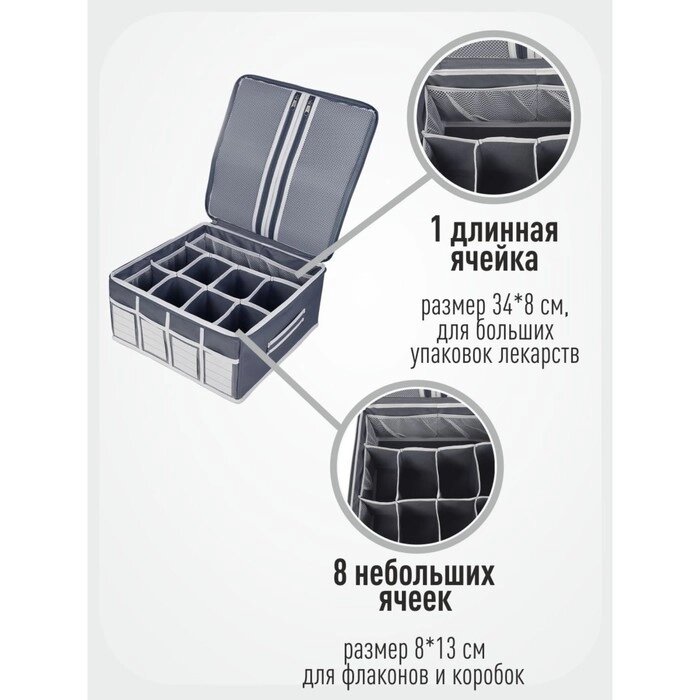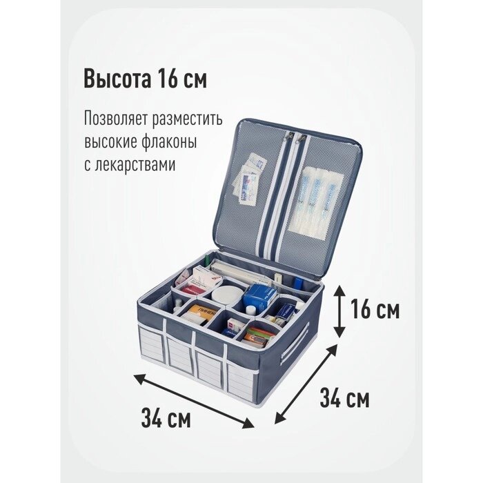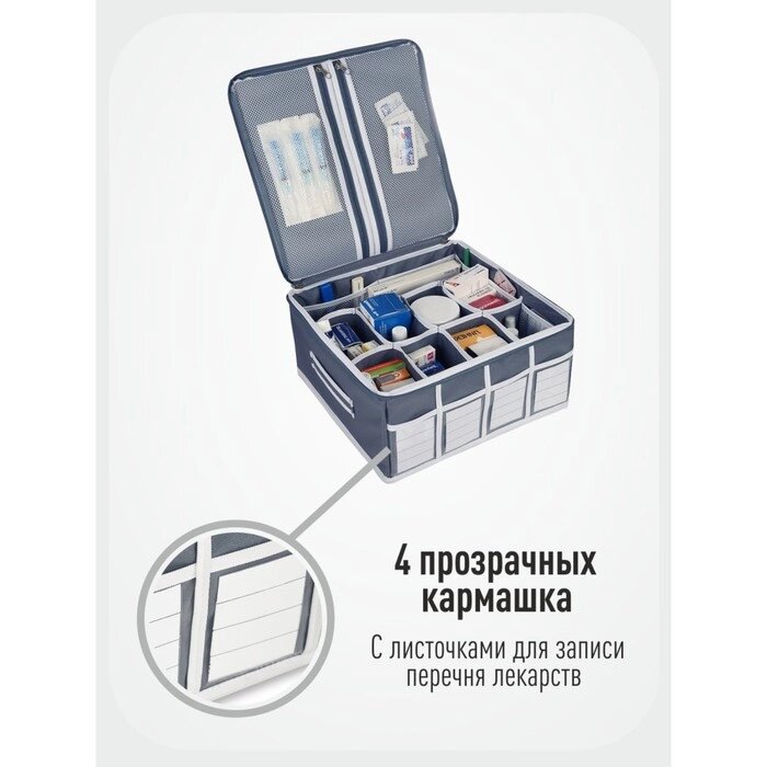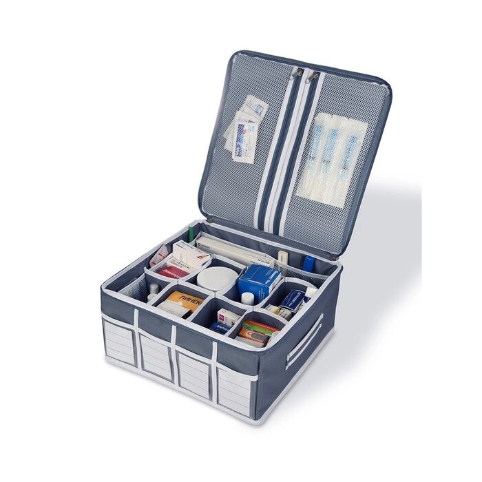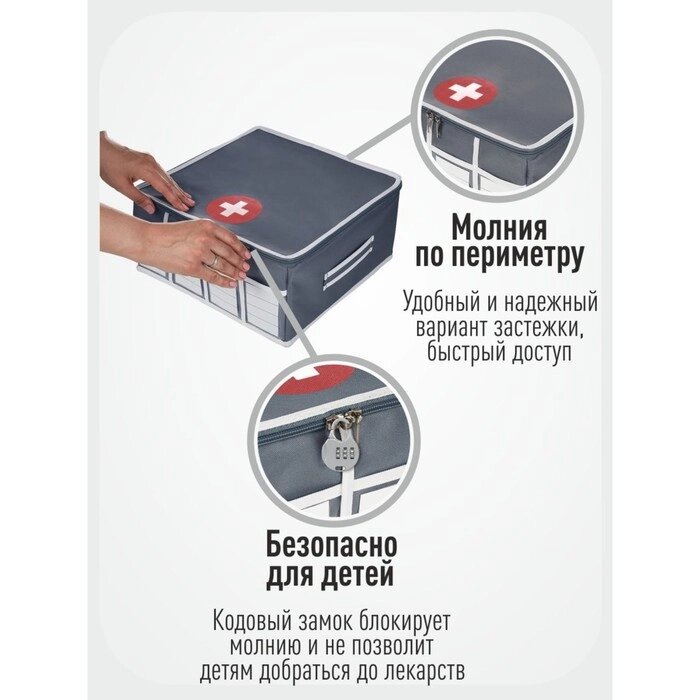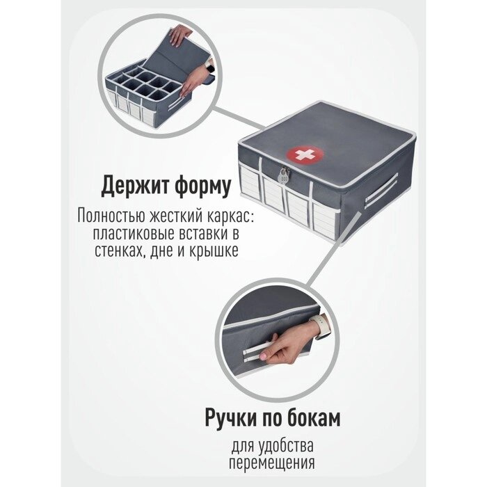 Домашняя аптечка KIDS SAFE, 34х34х16 см, 21 ячейка, серая