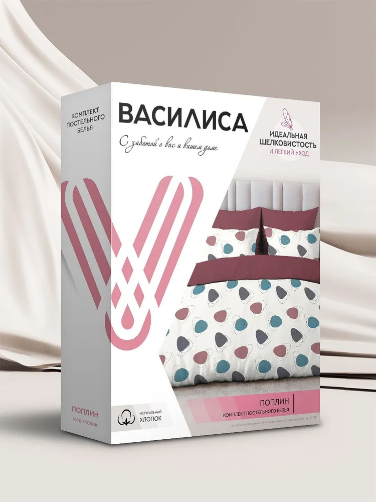 Постельное бельё от бренда «Василиса» изготавливается из натуральной ткани - поплин, 100 хлопок. Произведено с использованием технологии "Soft touch" - идеальная мягкость, благодаря чему ткань выдерживает большое количество стирок без потери качества, приятное по тактильным ощущениям, мягкое и хорошо держит тепло. Благодаря особому переплетению волокон, комплекты постельного белья из поплина не требуют тщательного ухода, и в то же время долговечны и износостойки. Способ застегивания наволочки - клапан, пододеяльника - отверстие без застежки по краю изделия.