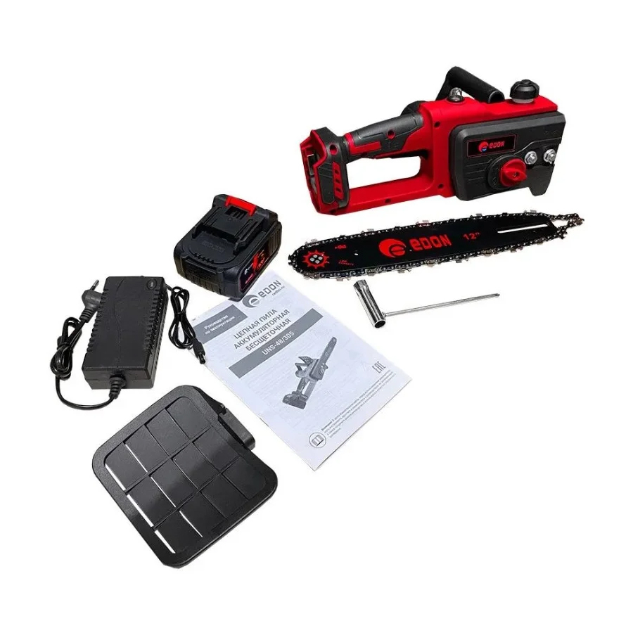 Особенности: бесщеточный энергоэффективный двигатель, современный аккумулятор большой емкости 3,0 Ач., литий-ионный (Lithium-ions) аккумулятор, в котором практически отсутствует эффект памяти, качественная износоустойчивая шина длиной 12 дюймов, наличие в шине звездочки, регулятор натяжения цепи, ручная (механическая) подача масла, эргономичная прорезиненная рукоятка, блокировка включения и защитный кожух обеспечивают безопасность при работе.