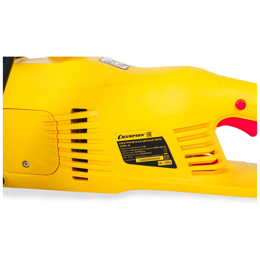 Электрическая цепная пила Champion 520N-16 c длиной шины 40 см является следующим поколением отлично зарекомендовавших себя цепных пил и обеспечивает отличную производительность и безопасную эксплуатацию. Благодаря оптимально распределенному весу и удобному расположению рукоятки работа с пилой не утомляет.