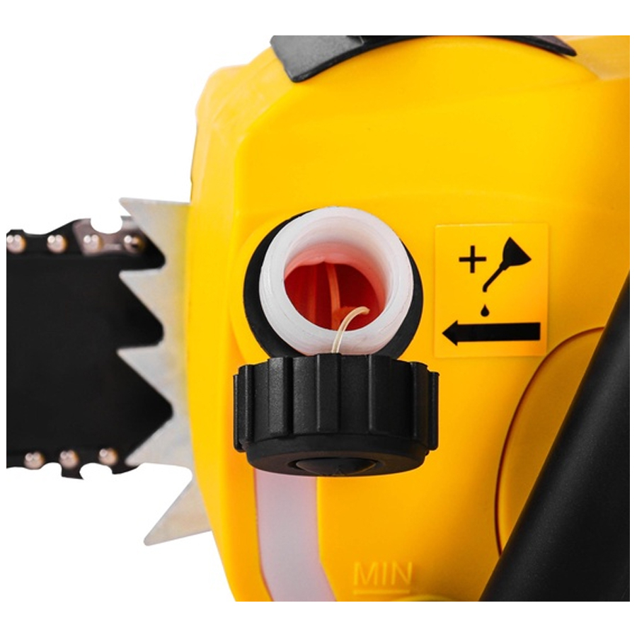 Удобная горловина масляного бака. Щиток защиты руки с мгновенной остановкой цепи.
