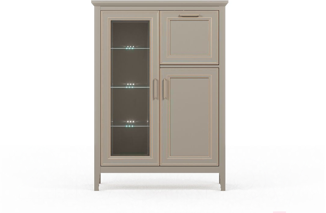 - Материал фасада ЛДСП, стекло (с фацетом, 4 мм), МДФ (с нанесенным рисунком патины)