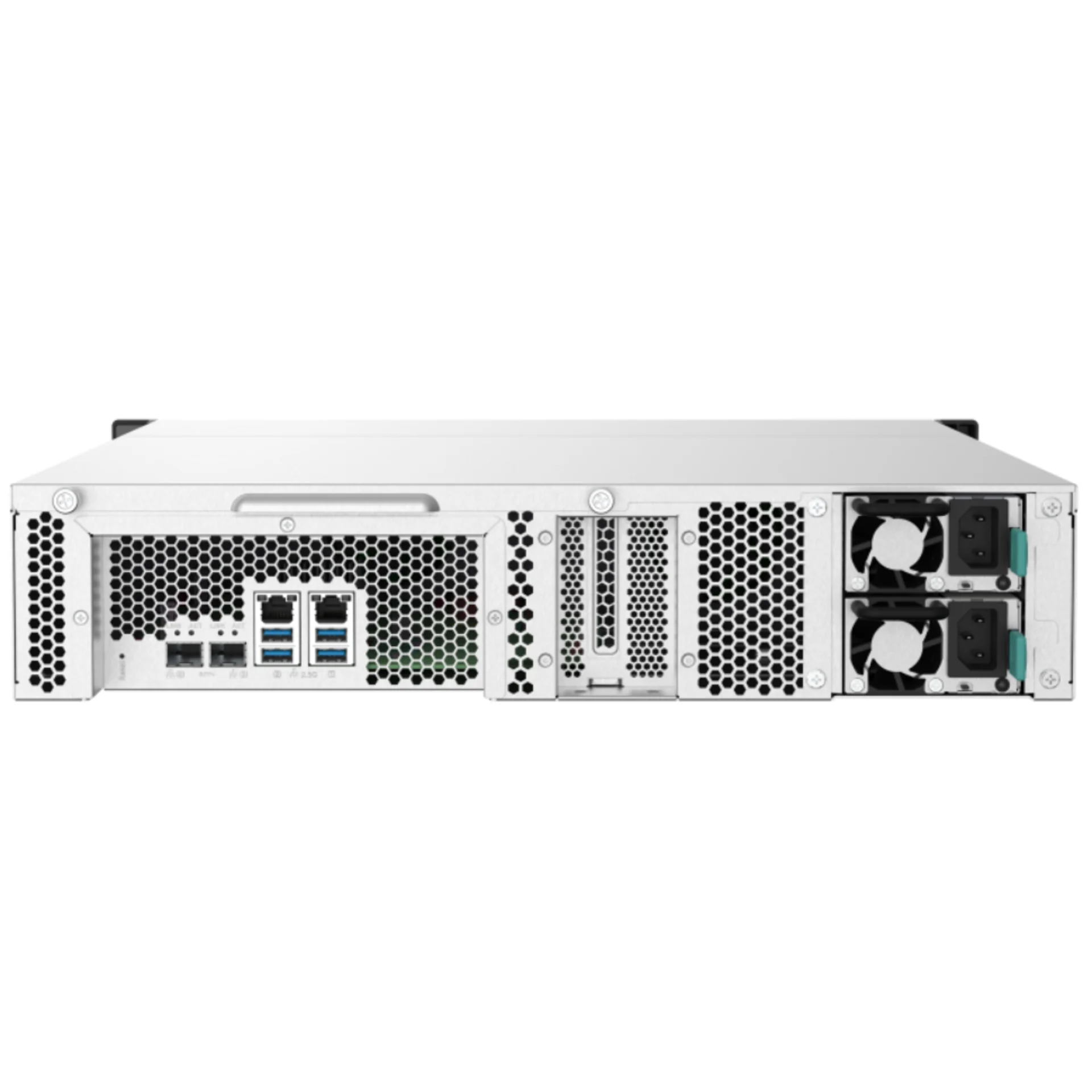 Система хранения данных QNAP TS-1232PXU-RP-4G 12 отсеков 3,5"/2,5", 2 порта 2,5 GbE BASE-T, 2 порта 10 GbE SFP+, стоечное исполнение, 2 блока питания. ARM Cortex-A57 Annapurna Labs AL-324 1,7 ГГц, DDR4.