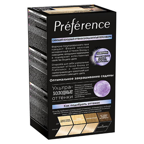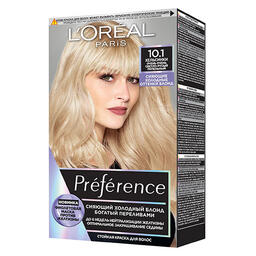 Стойкая краска для волос "Préférence" - премиальное качество окрашивания! Она создана ведущими экспертами лабораторий Лореаль Париж в сотрудничестве с профессиональным колористом Кристофом Робином. В результате исследований был разработан уникальный состав краски, основанный на более объемных красящих пигментах. Стойкая краска способна дольше удерживаться в структуре волос, создавая неповторимый яркий цвет, устойчивый к вымыванию и возникновению тусклости. Комплекс Экстраблеск добавит блеска насыщенному цвету волос. Красивые шелковые волосы с насыщенным цветом на протяжении 8 недель после окрашивания! Новая гамма оттенков Préférence Cool Blondes – это ультра-пепельные блонд-оттенки и новая маска с фиолетовой технологией для поддержания холодного оттенка без желтизны до следующего окрашивания! Уникальная фиолетовая маска нейтрализует желтизну до 6 недель после окрашивания, а благодаря большому объему позволяет сохранить желанный холодный оттенок надолго! Оттенок 10.1 вдохновлен вдохновлен городом Хельсинки, жемчужиной Финского залива. Этот истинно нордический блонд, обогащенный пепельными переливами, озарит Ваши волосы, как полночная луна над городом. В состав упаковки входит: флакон гель-краски (60 мл), флакон-аппликатор с проявляющим кремом (60 мл), фиолетовая маска (54 мл), инструкция, пара перчаток.