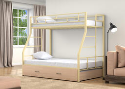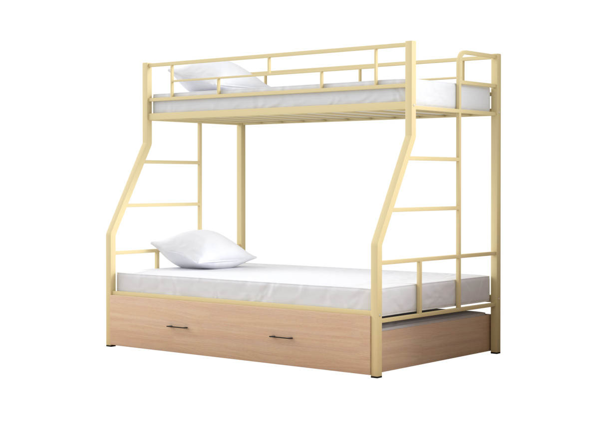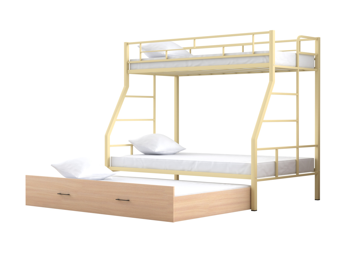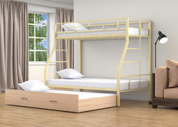 Двухъярусная кровать Раута Твист выкатная от Фабрики мебели 4 Сезона. Спальные места - 120х190 и 90х190. Выкатное спальное место из ЛДСП 16 мм 120х185 см, можно использовать как ящик для хранения.