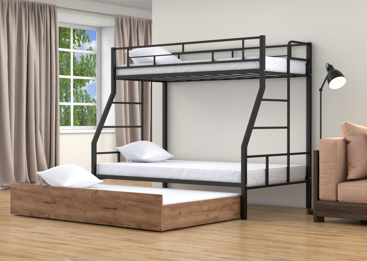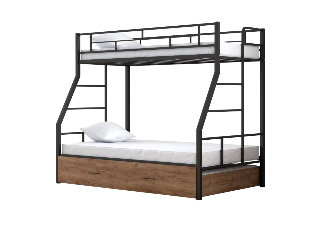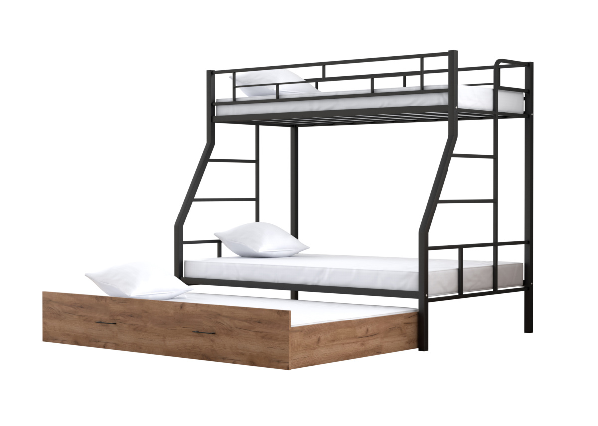 Двухъярусная кровать Раута Твист выкатная Черный/Дуб крафт табак
