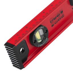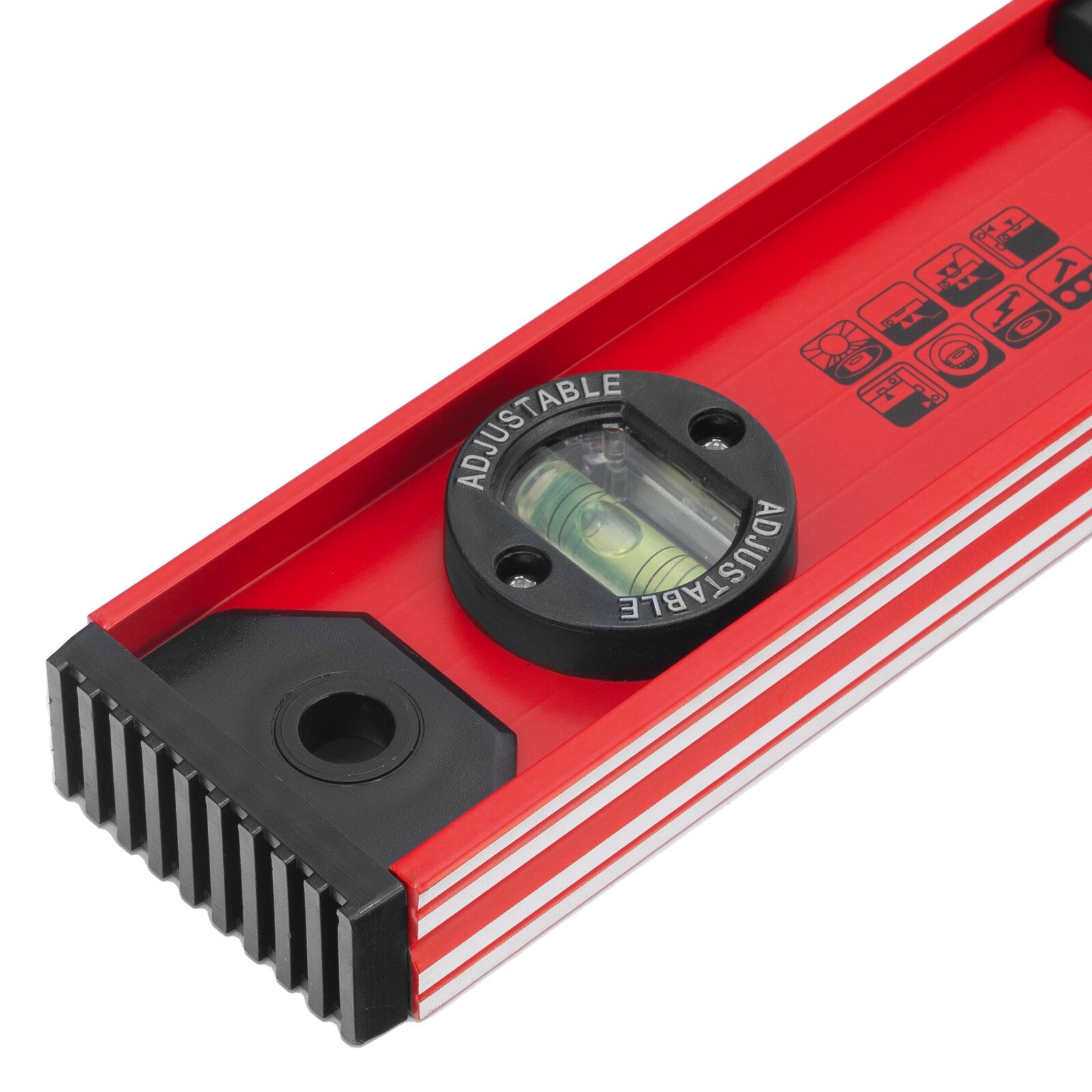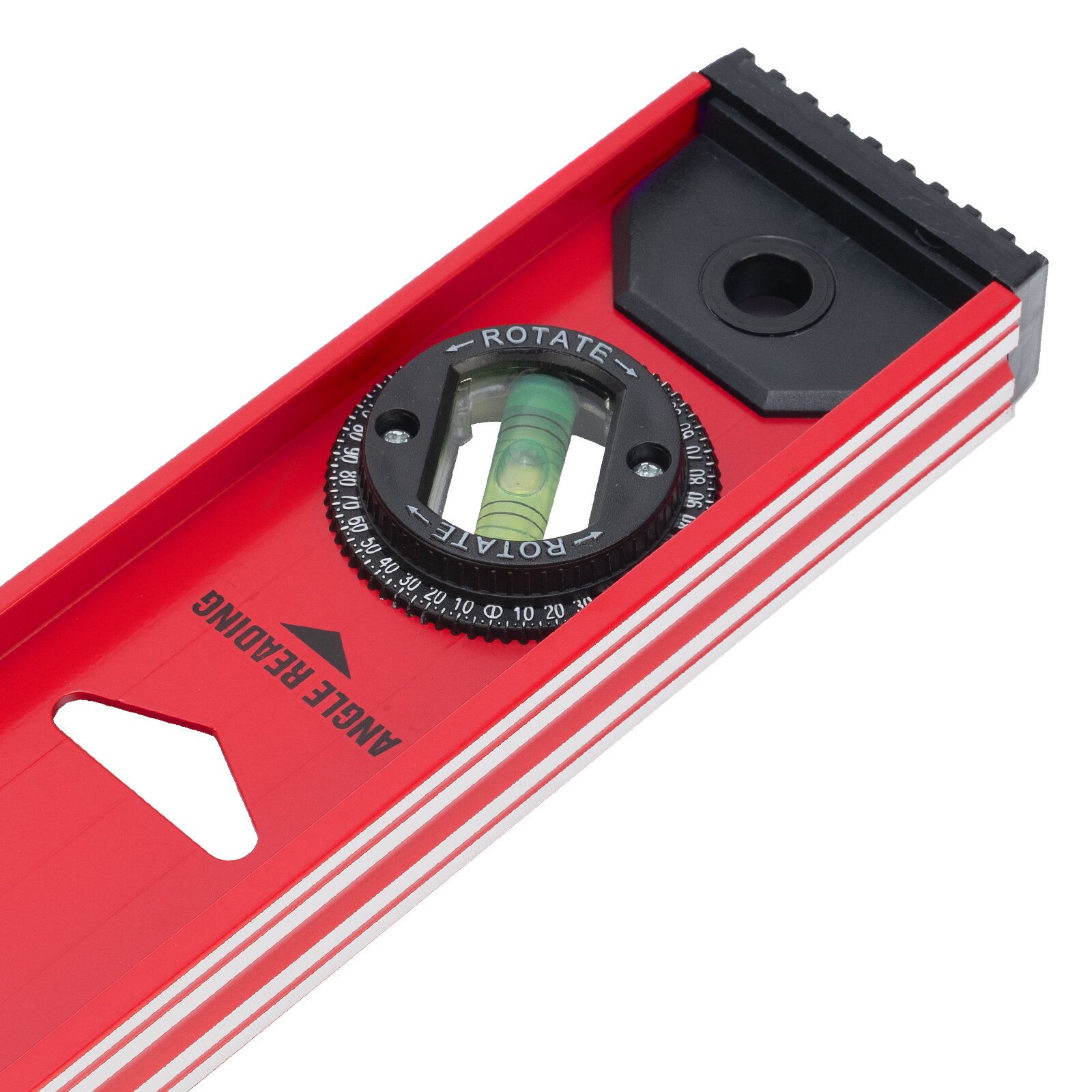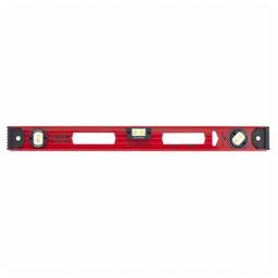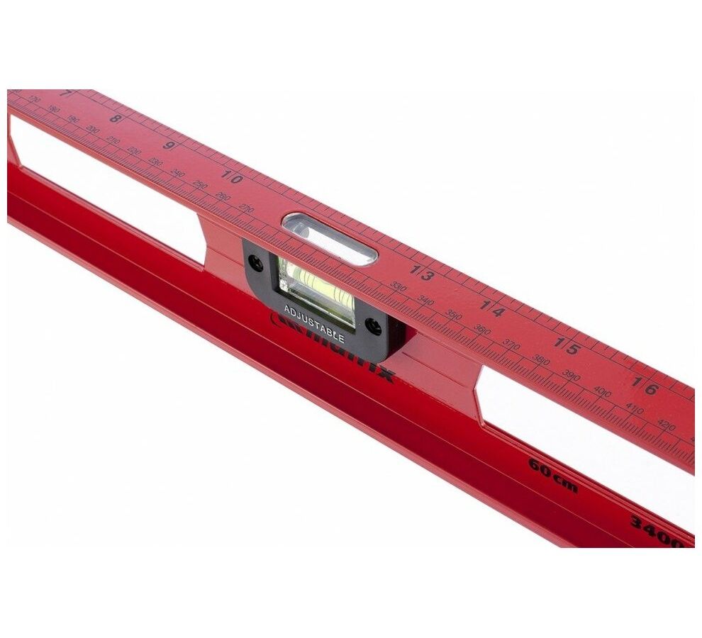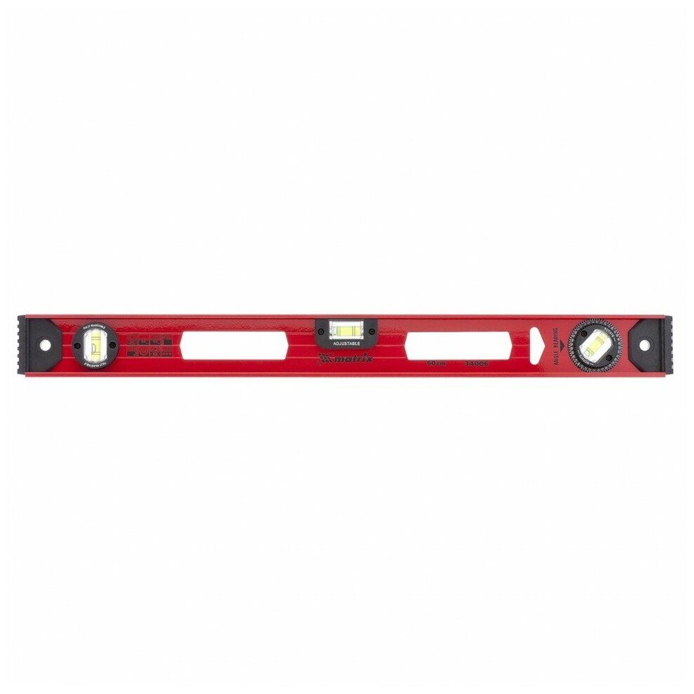 Усиленный алюминиевый уровень MATRIX Рельс широко используется для определения отклонений от вертикали, горизонтали и других углов на обширных поверхностях. Инструмент обладает повышенным рабочим ресурсом, так как его корпус полностью изготовлен из устойчивого к коррозии материала алюминия и имеет жесткую конструкцию из двутаврового профиля.