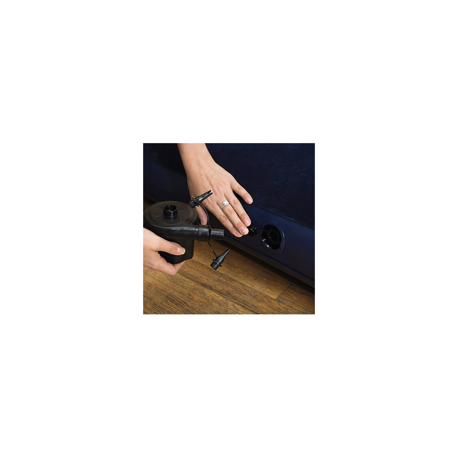 Матрац відрізняється компактністю: його легко зберігати та перевозити. Цей матрац виготовлений із міцного водонепроникного вінілу, а зверху покритий м'яким флокованим шаром, що нагадує велюр. Для швидкого спуску та накачування повітря є спеціальний клапан та електричний насос. Є ремкомплект, який може стати в нагоді для дрібного ремонту матраца.
