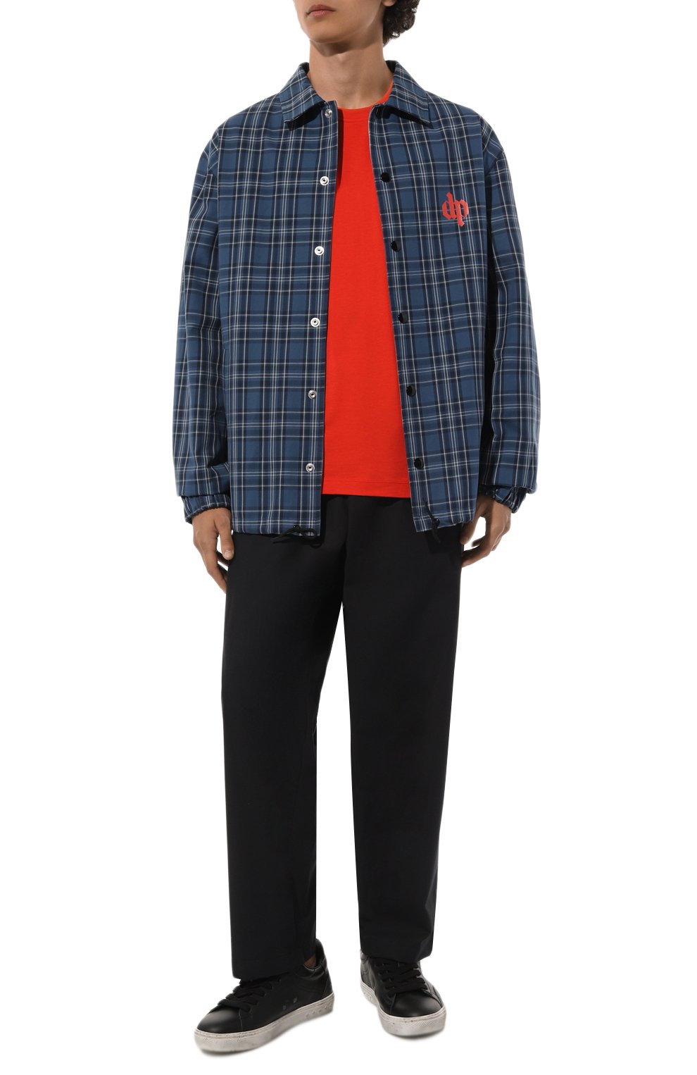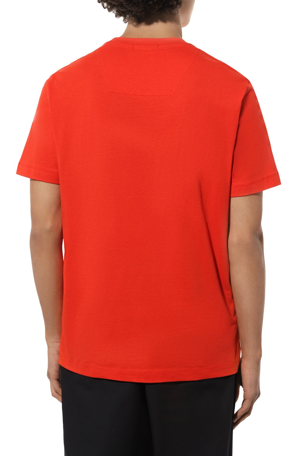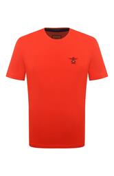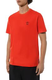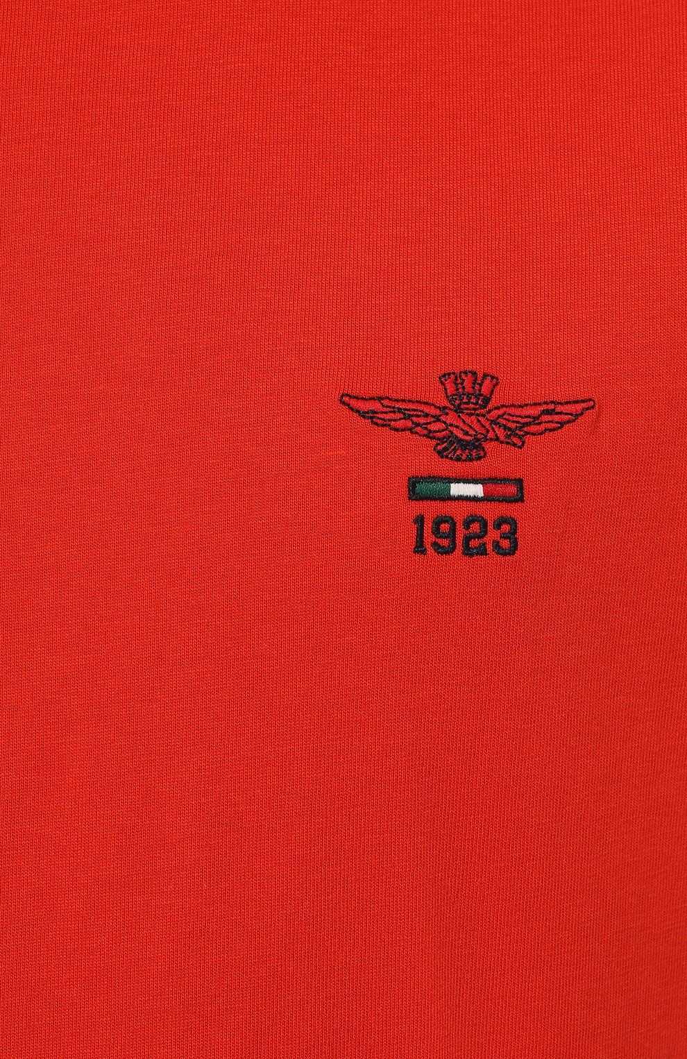 Огненно-красная футболка – простой и верный способ добавить яркий акцент повседневному образу с вещами в спокойной гамме. Для пошива модели с круглым вырезом использовали тонкое хлопковое джерси, которое хорошо пропускает воздух и тянется в ширину, обеспечивая комфортную посадку по фигуре. Спереди изделие украсили небольшой вышивкой в виде эмблемы ВВС Италии и года их основания.