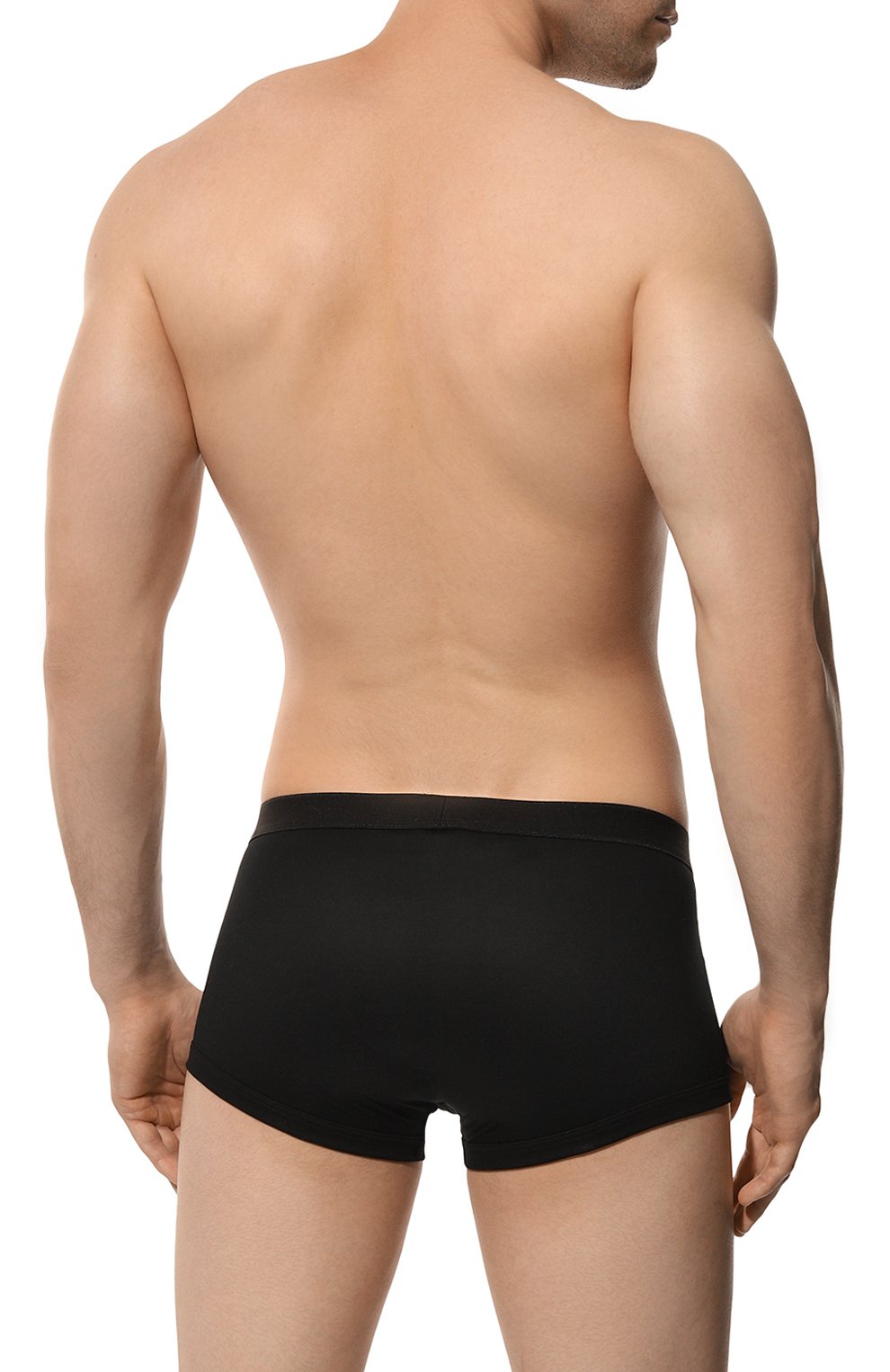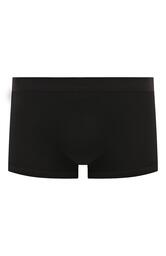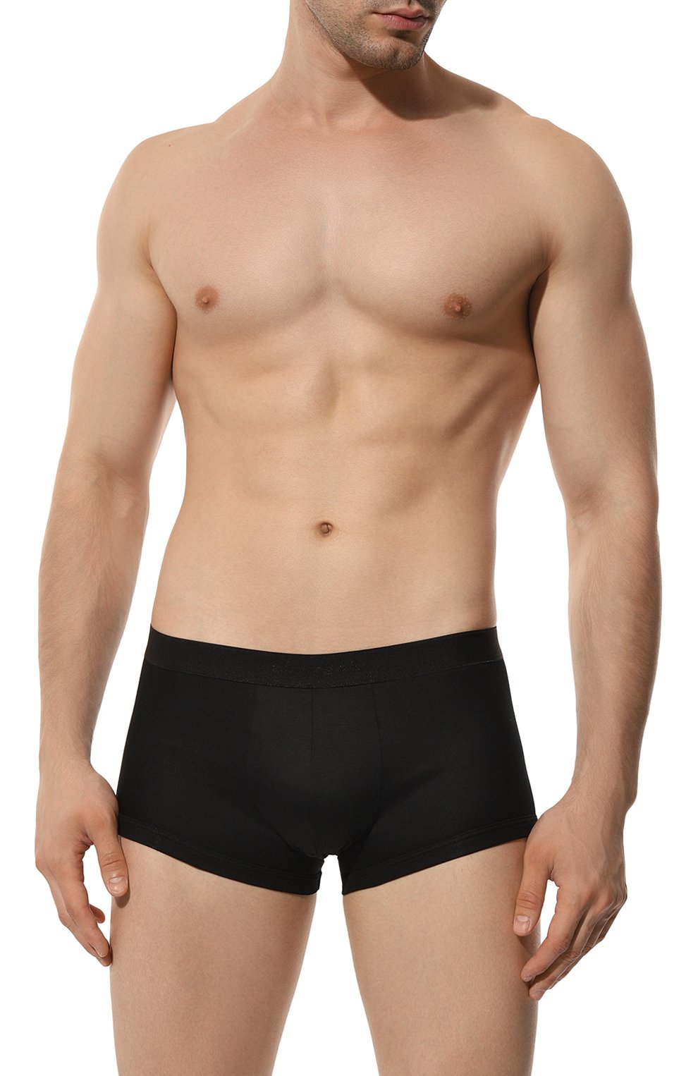 Черные боксеры со средней посадкой сшиты вручную из гладкого тонкого джерси с шелковистой текстурой. Приятный на ощупь материал из редкого длинноволокнистого хлопка Sea Island, выращенного на острове Барбадос, отлично пропускает воздух и не теряет первоначальную форму после стирок. Тщательно обработанные плоские швы не раздражают кожу. Однотонные облегающие трусы дополнены поясом-резинкой с логотипом марки.